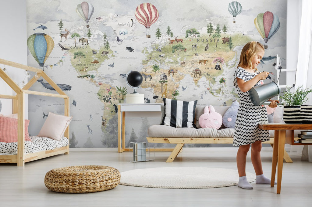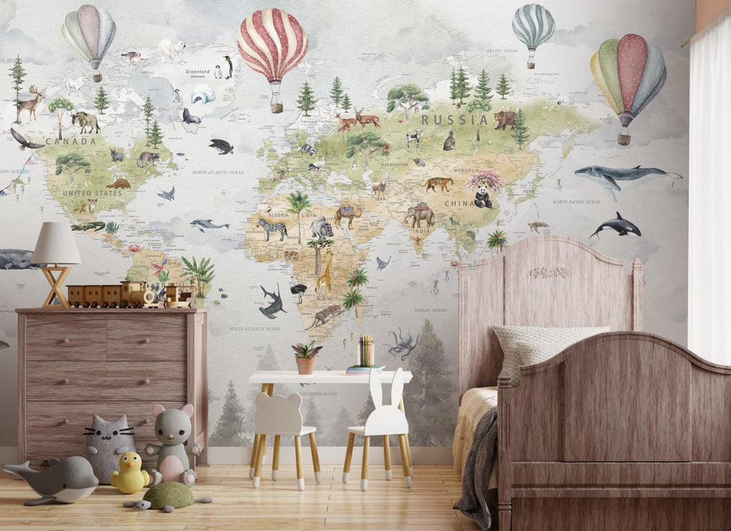 Papier peint chambre bébé rhinocéros avion et montgolfière
