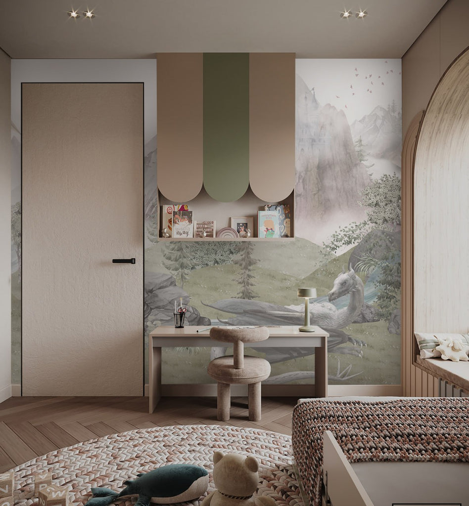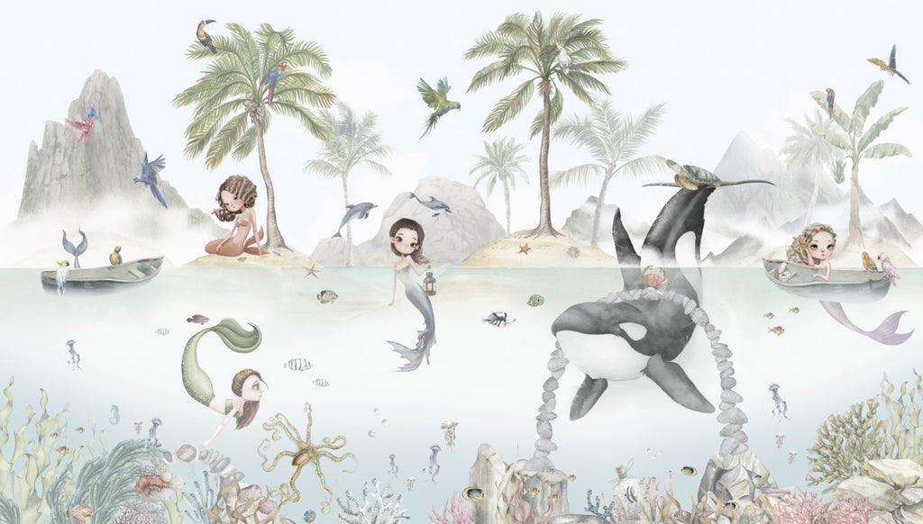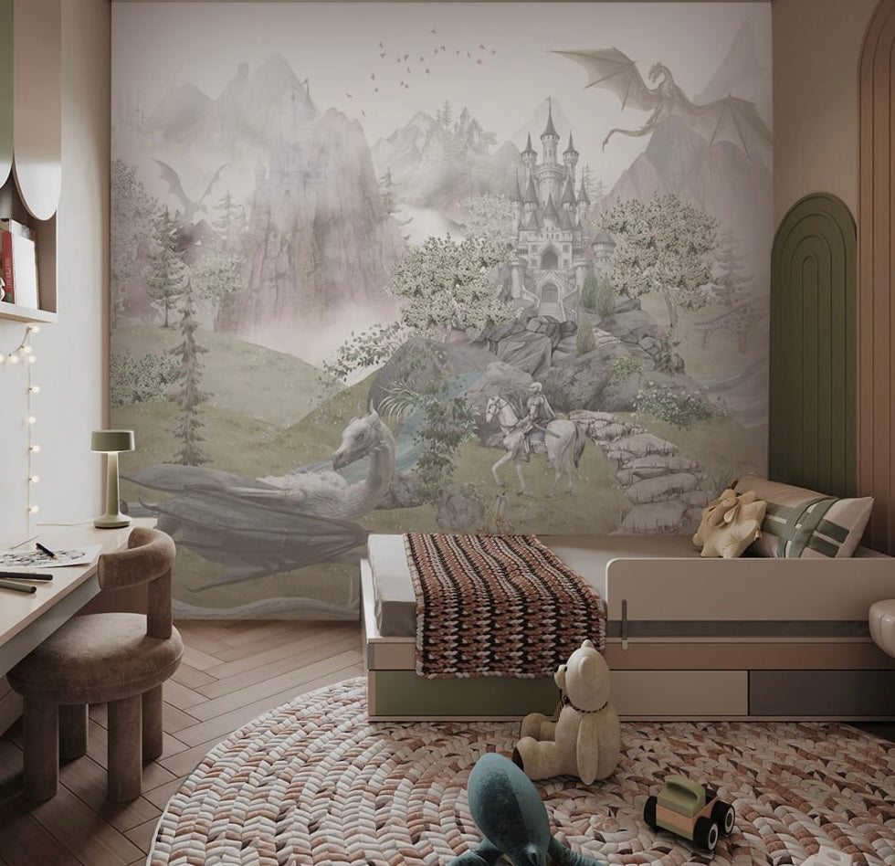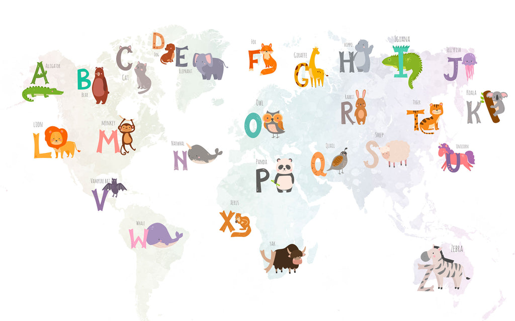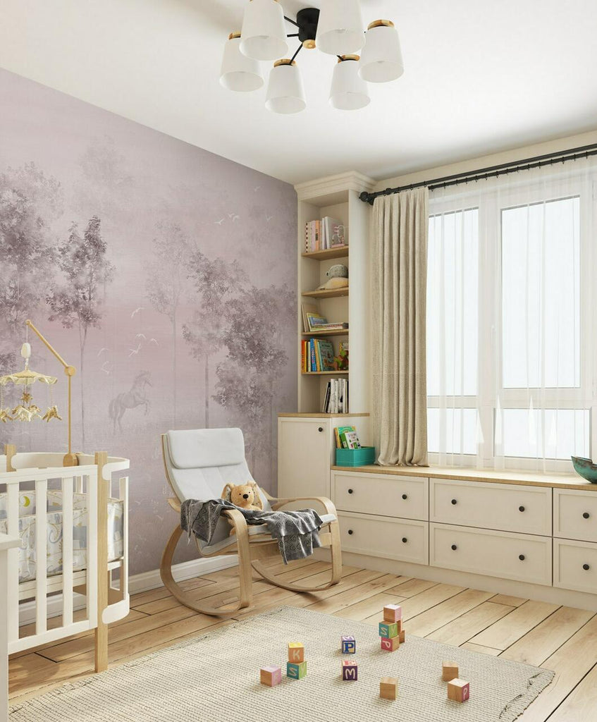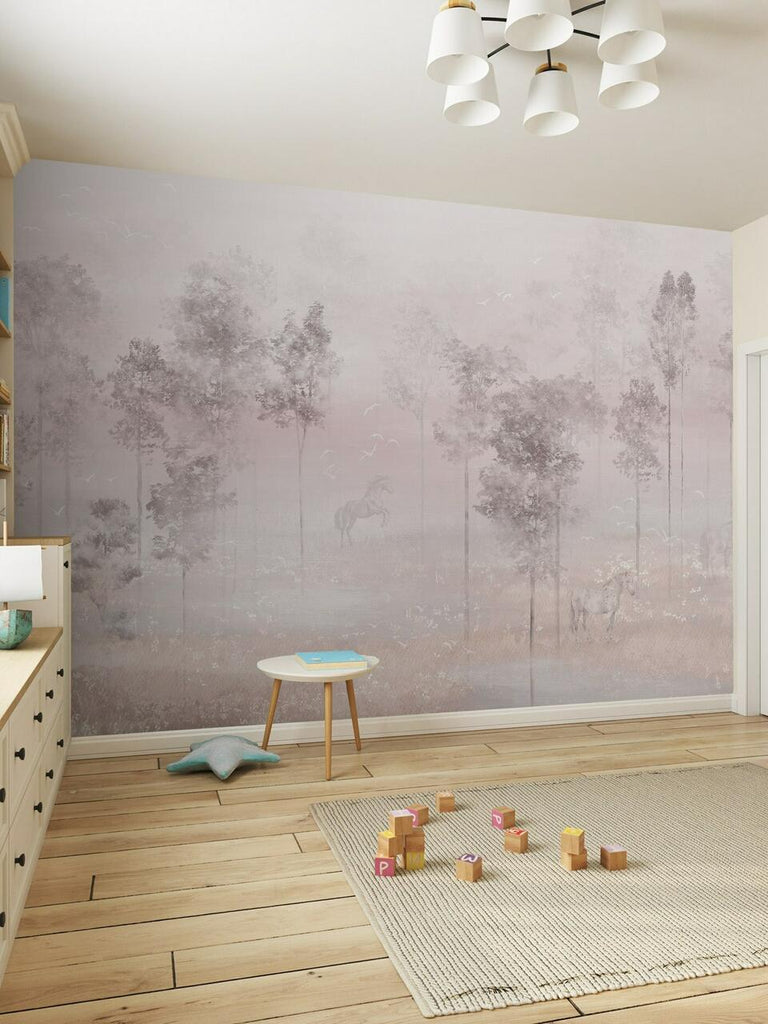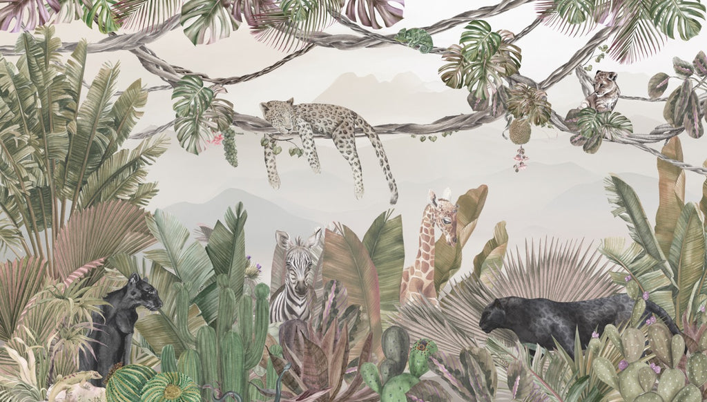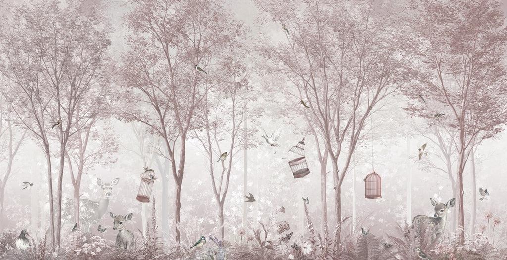 Papier peint panoramique chambre enfant animaux dans la forêt