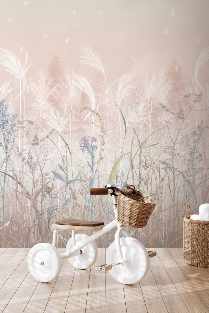 Papier peint panoramique chambre enfant arc en ciel & ours à vélo