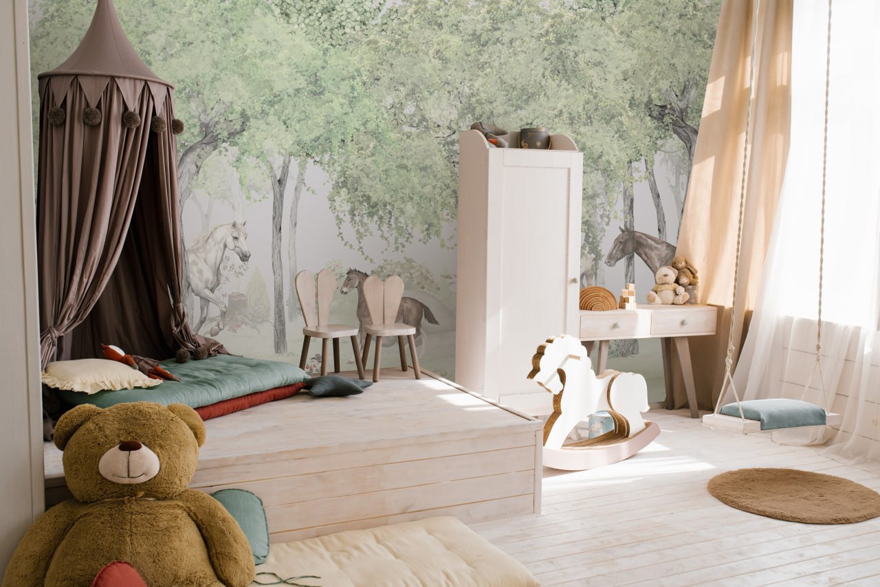 Papier peint prairie magique aux chevaux
