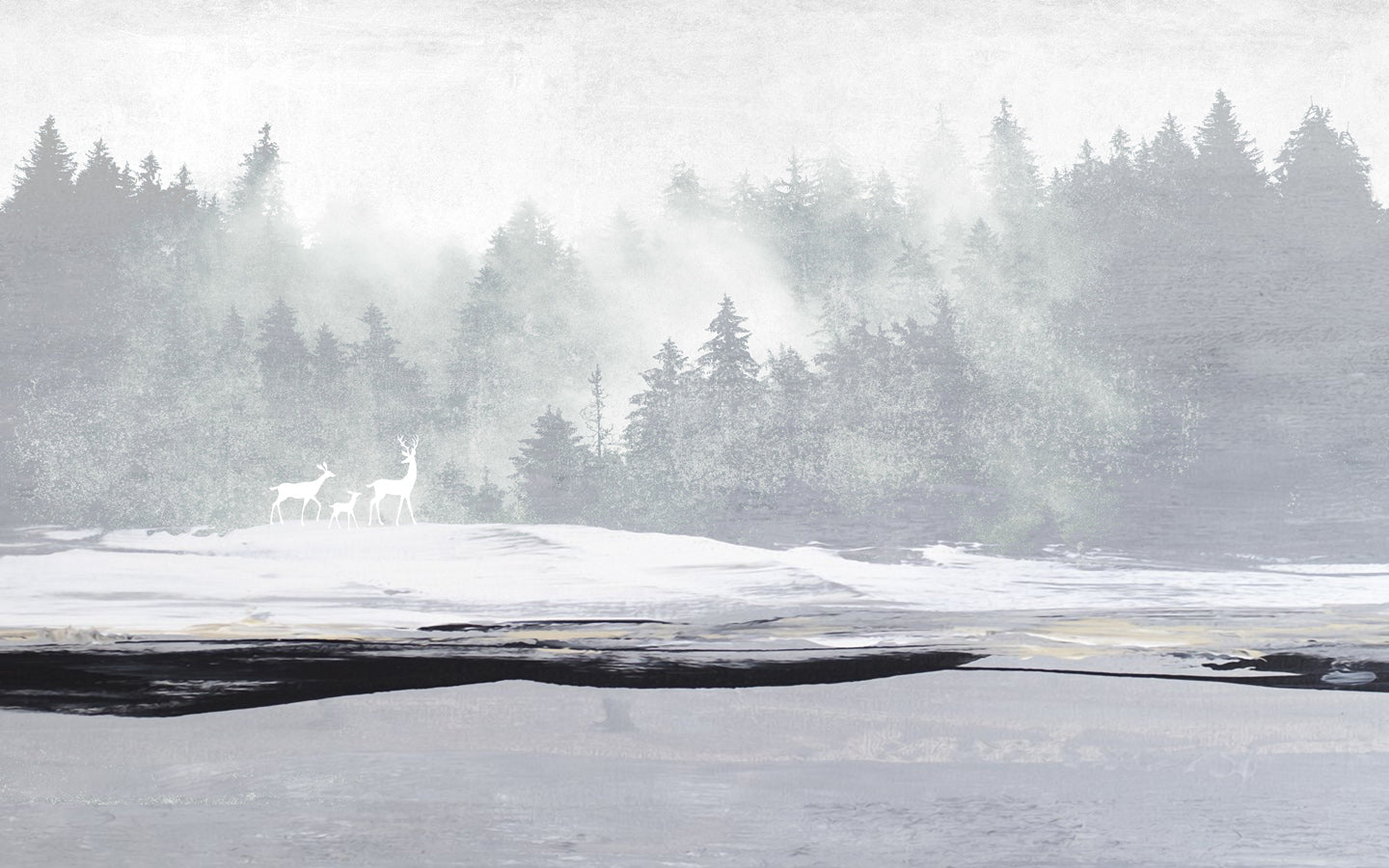 Découvrez notre papier peint panoramique forêt brumeuse et cerfs, qui vous amènera aux abords d'une forêt enneigée. Cette tapisserie trompe l'œil et au style abstrait est idéale dans une chambre, un salon ou un bureau. Un design mural qui apportera lumière et fraicheur à votre pièce. Un seul panneau mural pour transformer et rendre votre intérieur unique. Ce papier peint s'adapte dans un petit comme grand espace.