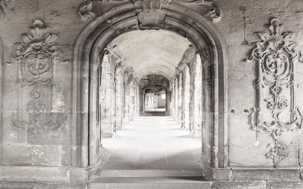 Papier peint panoramique trompe l'œil couloir marbre parisien