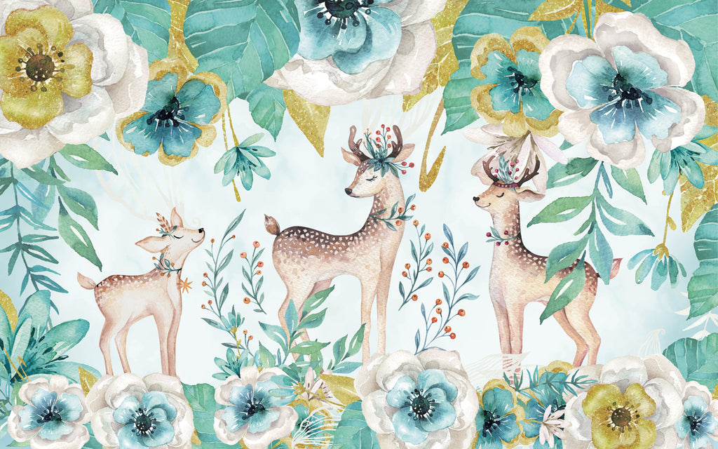 Papier peint panoramique douces biches in the green flower